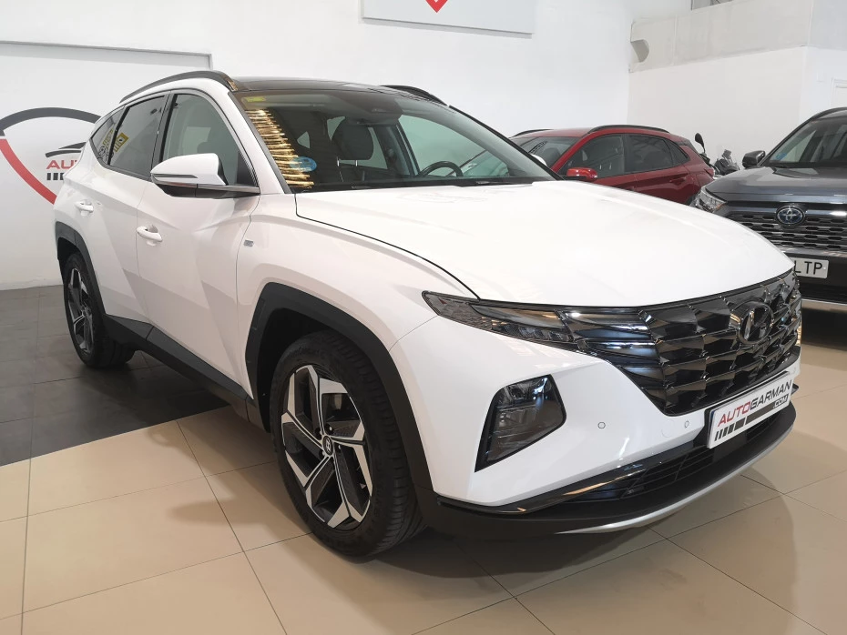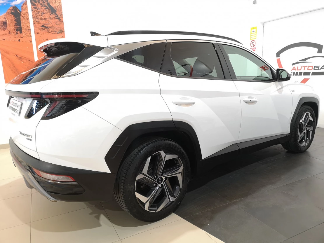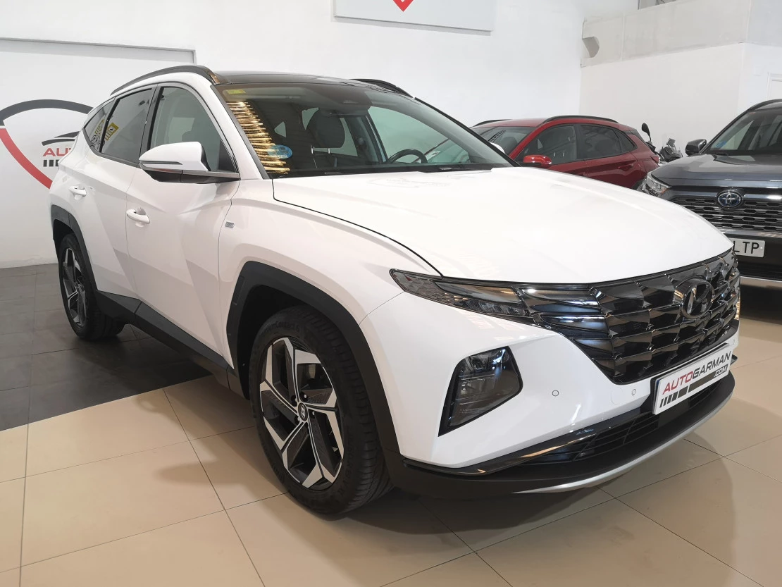 HYUNDAI TUCSON 1.6 TGDi DCT 4X4 180cv 48V. Etiqueta ECO. En perfecto estado, muy equipado, faros led, navegador, apertura sin llave, sensores de aparcamiento, cámara de visión trasera y 360ª, Android Auto/ Apple CarPlay, asientos delanteros calefactados y aireados, asientos traseros calefactados, volante calefactado, techo panorámico corredizo, cámara visión lateral al dar intermitencia, levas en volante, portón eléctrico, detector ángulo muerto, mantenimiento de carril, etc. Kilómetros certificados, precio con IVA, transferencia, 1 año de garantía y 1 año libre de mantenimiento, posibilidad de financiación desde 250€/mes. Se puede ver y probar sin compromiso o si lo prefiere se lo llevamos a casa (solo península). Este anuncio no es vinculante, puede contener errores, se muestra a título informativo y no contractual.